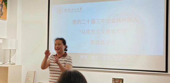 備課會(huì)議第二項(xiàng),由教研室參會(huì)教師圍繞課程知識(shí)點(diǎn)、教學(xué)思路、教學(xué)設(shè)計(jì)和教學(xué)內(nèi)容展開研討。老師們紛紛表示,要結(jié)合全會(huì)精神深挖課程內(nèi)容,充分將馬克思主義基本原理與黨的創(chuàng)新理論充分結(jié)合,上好每一次課程。