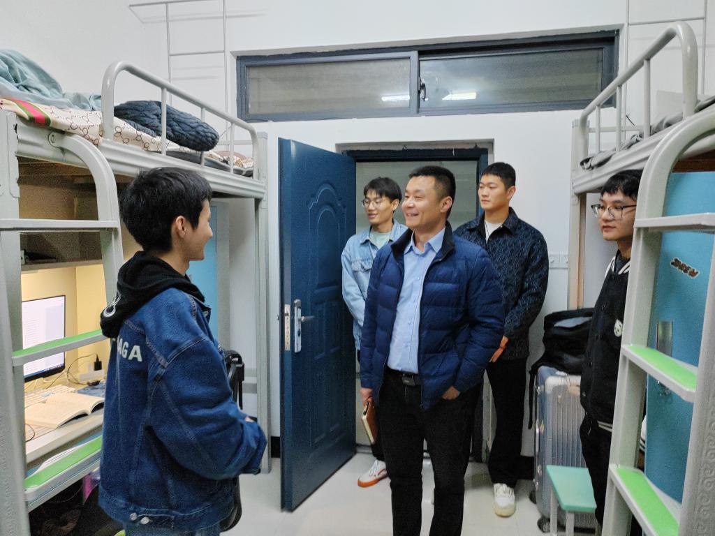 張紅勇與學(xué)生談心的同時(shí),仔細(xì)查看寢室通電通水通風(fēng)情況,詳細(xì)了解每間宿舍住宿條件和學(xué)生思想狀況,關(guān)心同學(xué)們生活上是否存在困難,提醒同學(xué)們整理好宿舍衛(wèi)生,保持室內(nèi)通風(fēng),適當(dāng)開(kāi)展體育運(yùn)動(dòng),保持健康的體魄和良好的精神狀態(tài),以昂揚(yáng)的精神風(fēng)貌迎接學(xué)習(xí)實(shí)踐挑戰(zhàn)。
